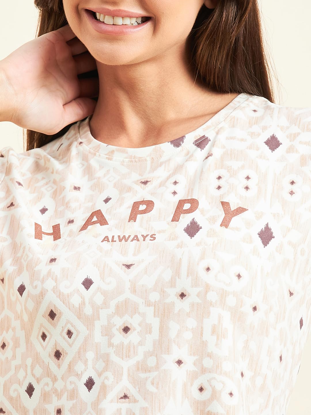 - Cloud Soft Aop Fabric For Comfort And Easy Breathability, Model Is Wearing Size Small