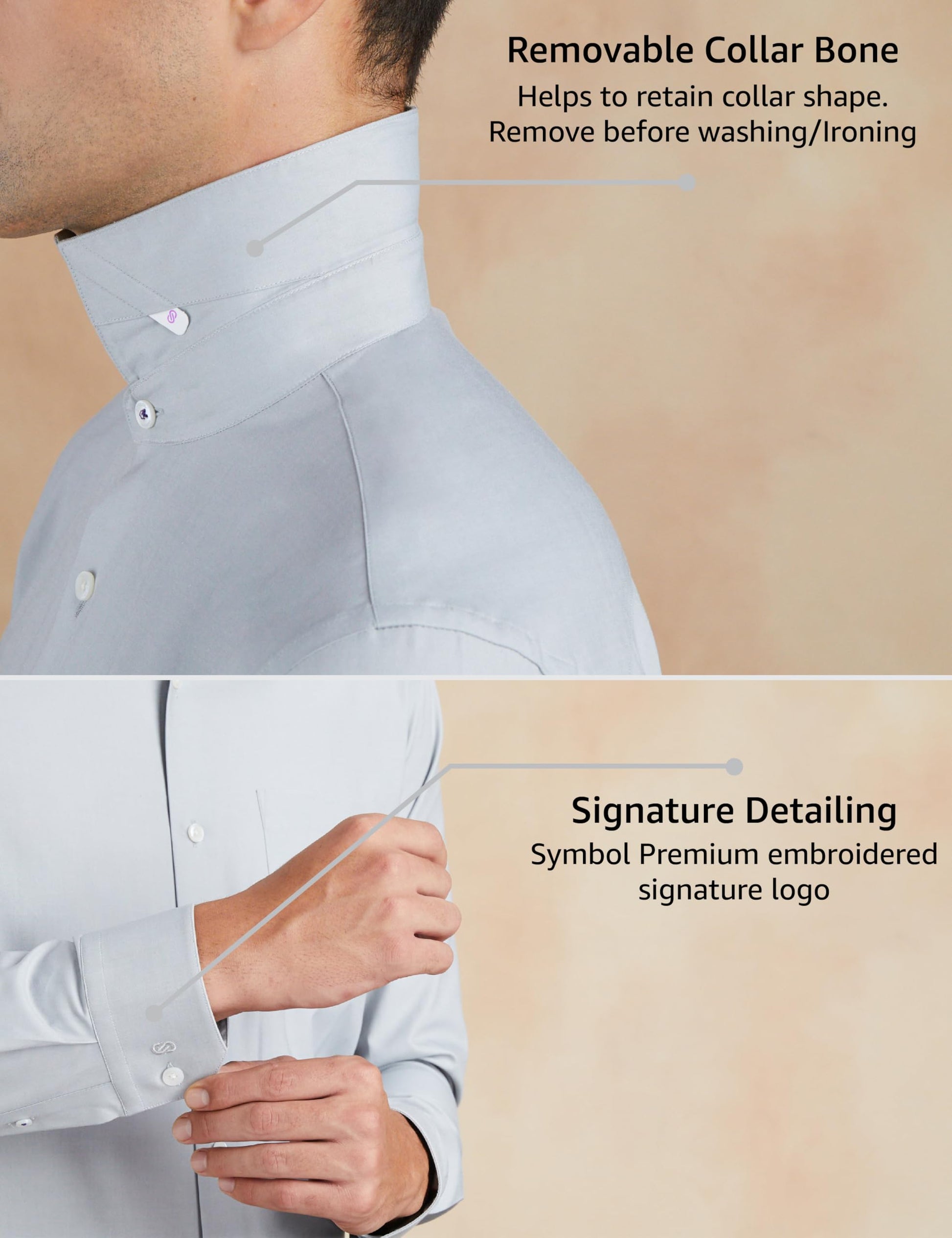 Symbol Premium Men's Cotton Non-Iron Formal Shirt (Regular Fit | Solid) (SP-M-S24-FS-02_Light Grey_40)