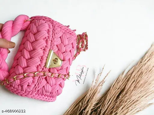 NameTamanna Store Women's Stylish Hand knitted T-Shirt Yarn Crochet Bag | Macrame Bag | Crossbody Sling Bag for Women n's & Girl's (Multicolor) (Pack of 1)