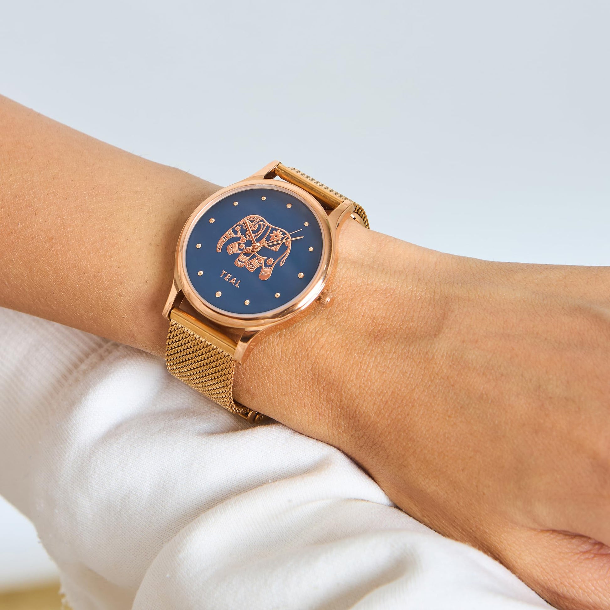 Chumbak Teal Carnival Elephant Women's Wrist Watch with Metal Mesh Strap
