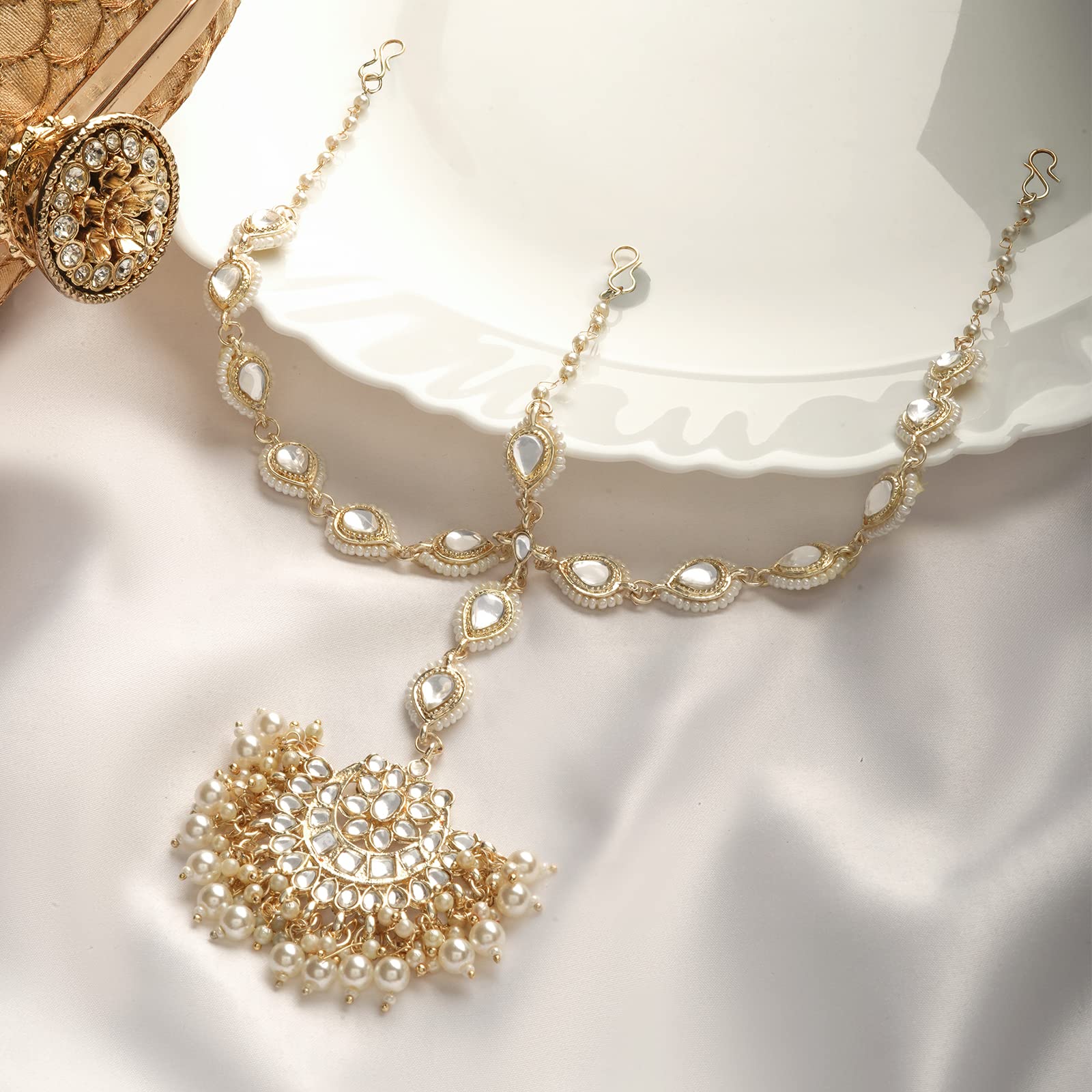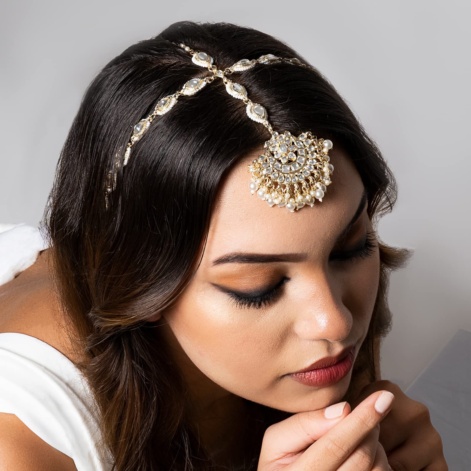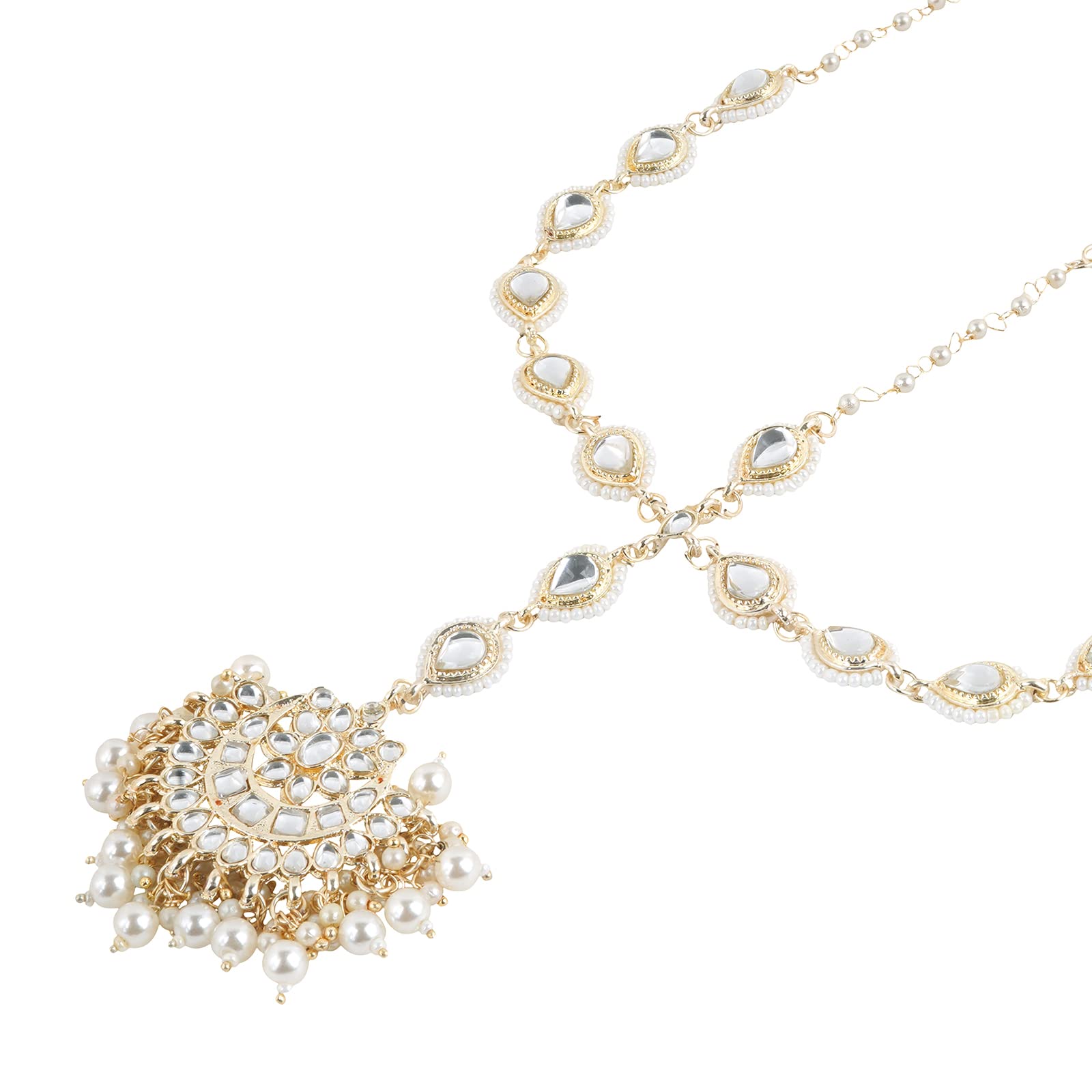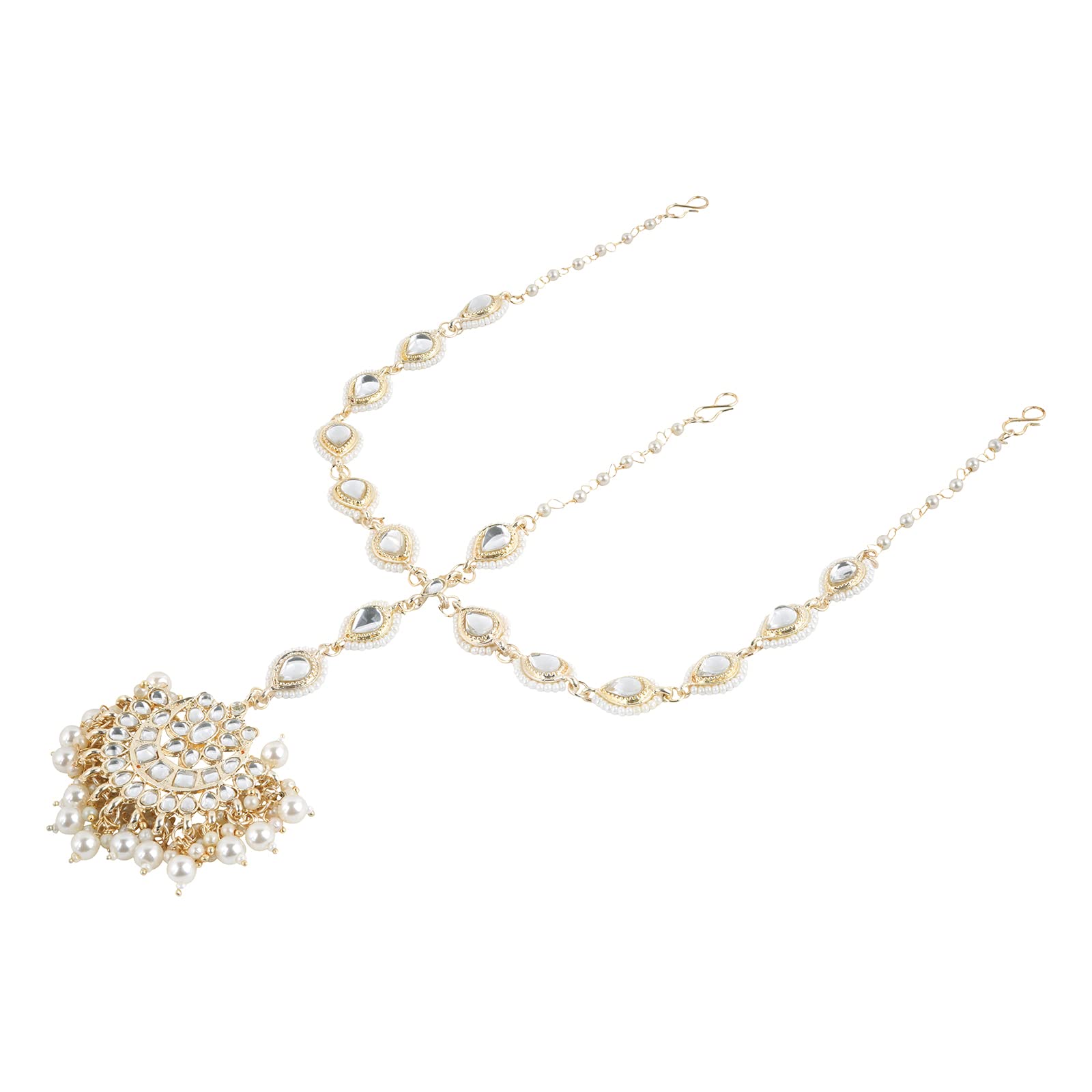 - Description: Elevate your style to occasion-worthy looks and brighten the glow on your face with our maang tikas, handcrafted meticulously to perfection with intricate details and glimpses of polki and pearl to add a pinch of chic.