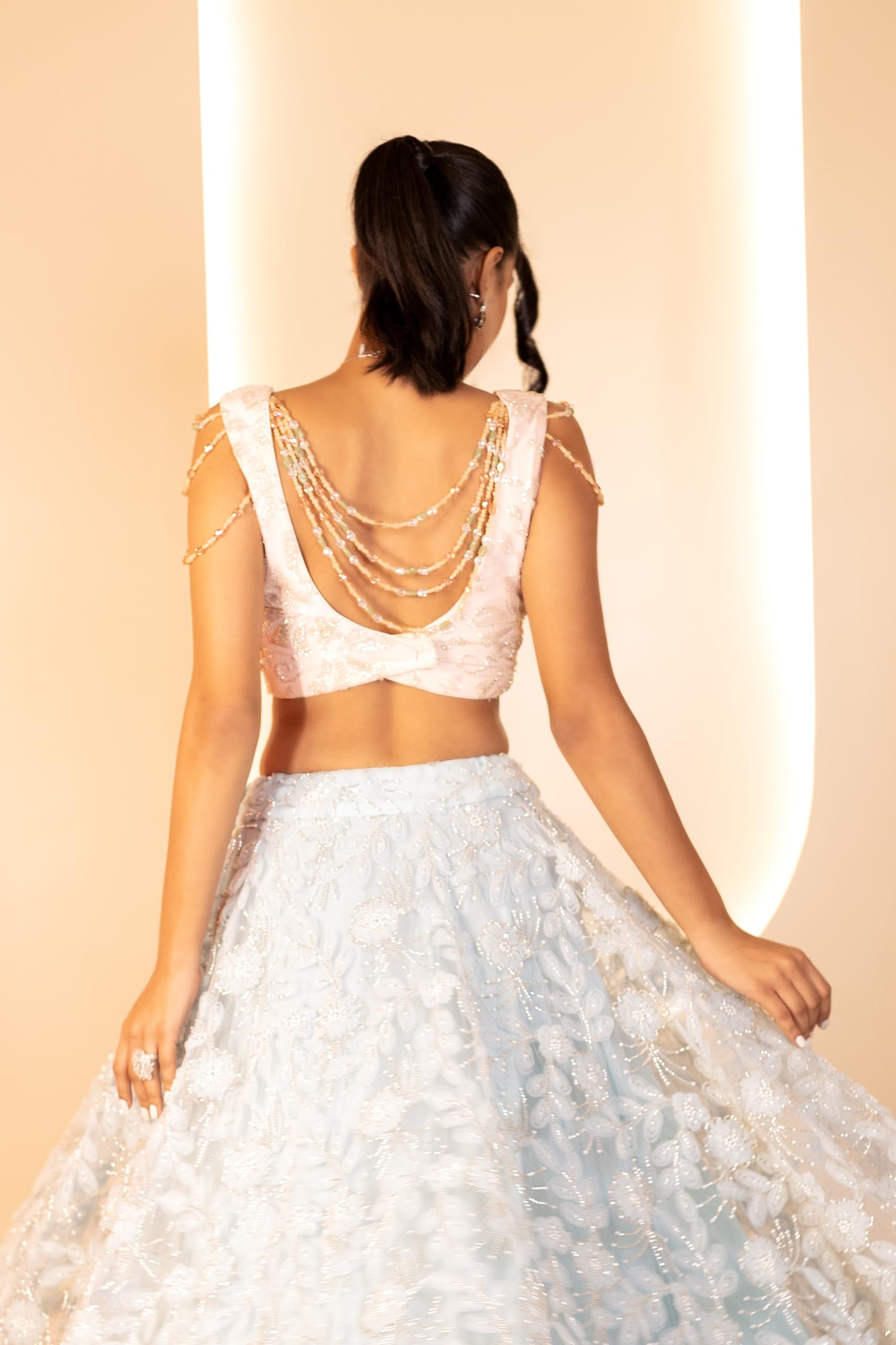 The Behruz Theory Mint & Peach 3D Embroidered Ensemble Lehenga | Net Fabric Lehenga | Party wear dress for women | Perfect for your special occasions | Traditional and stylish Lehenga set for women