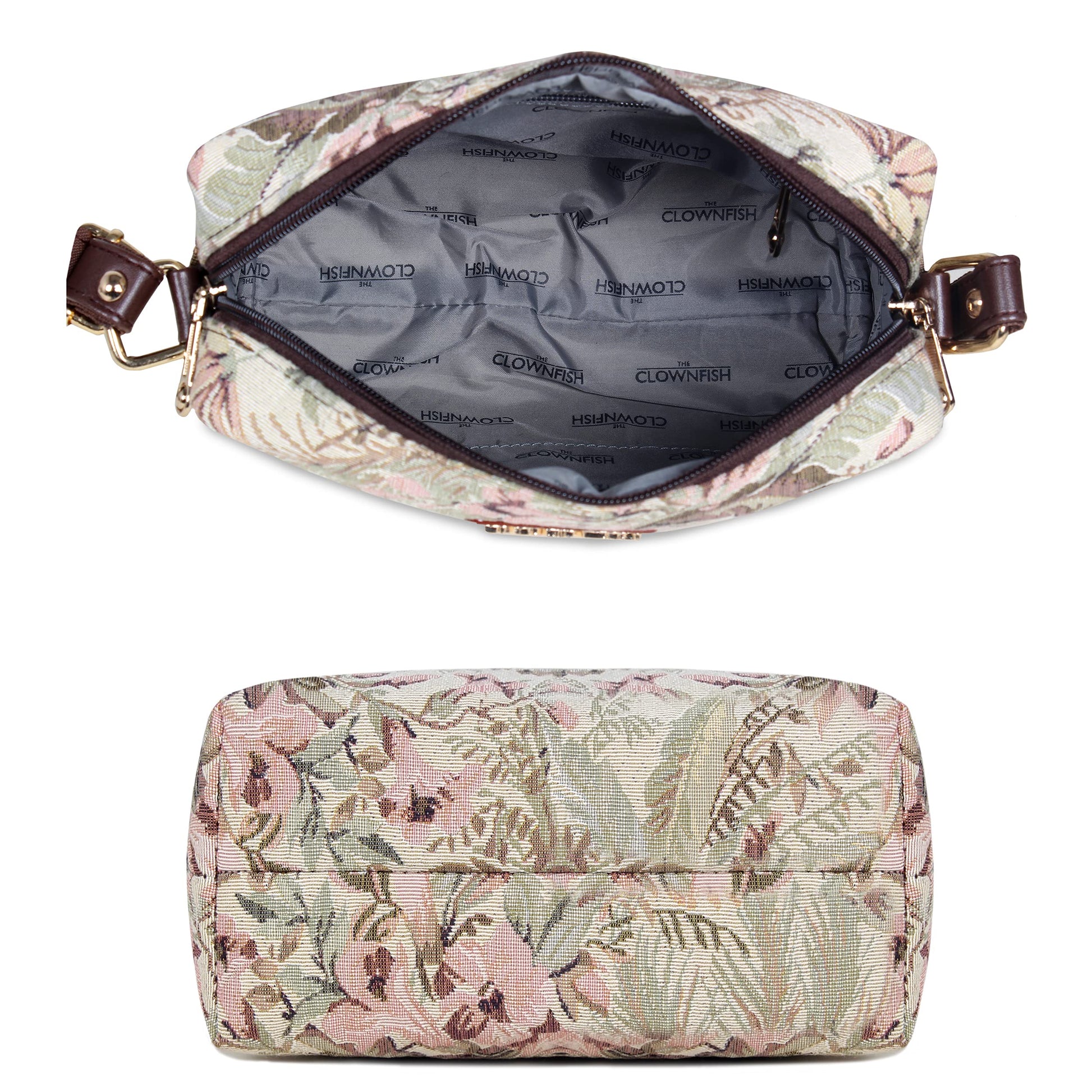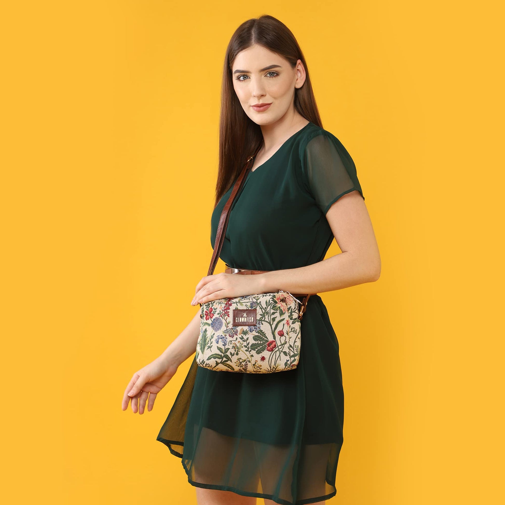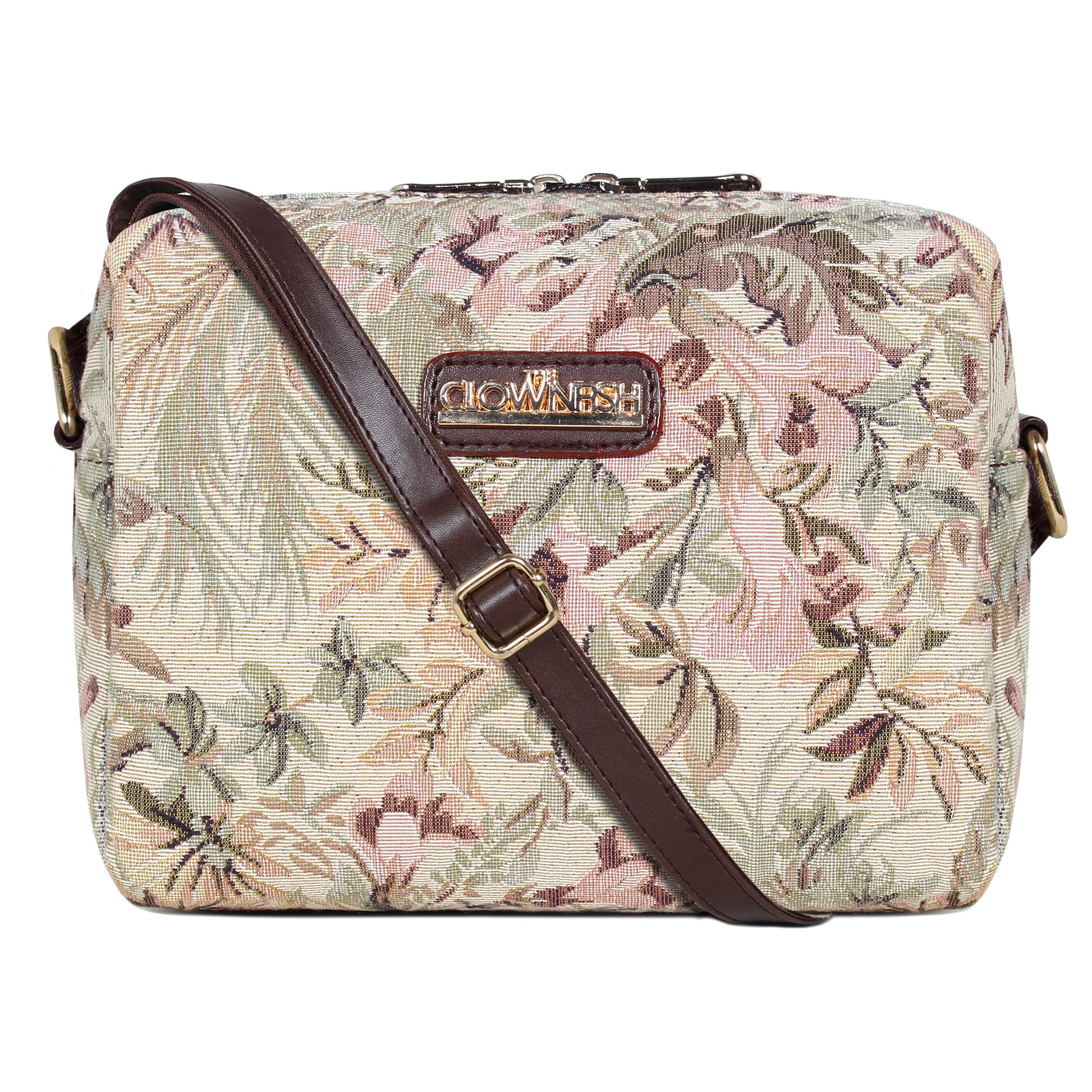 - PREMIUM MATERIAL: This sling bag is made in a combination of premium Faux leather and Tapestry material. For the inner lining soft feel polyester fabric is used. Comes with durable reinforced fittings like zippers, buckles and hooks