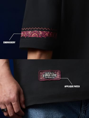 The Souled Store Captain America: Indie Shield Men and Boys Short Sleeves Round Neck Black Embroidered Casual Lightweight Drop Shoulder Streetwear Trendy Oversized T-Shirt