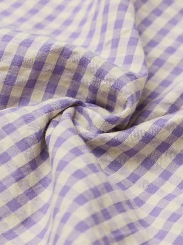- PLAYFUL GINGHAM PATTERN: Features a classic light blue gingham design with vibrant orange and green floral embroidery on the back for a unique, standout look.