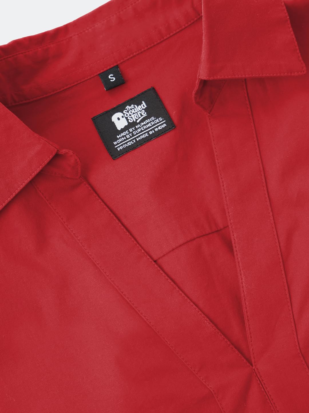 The Souled Store Corset Shirt: Cherry Red Women and Girls Long Sleeves Collared Neck Button Front Fitted Shirts