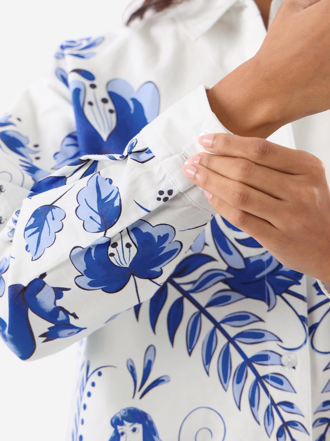 The Souled Store Disney: Once Upon A Dream Women and Girls Long Sleeve Collared Neck Button Front White Cotton Oversized Shirts
