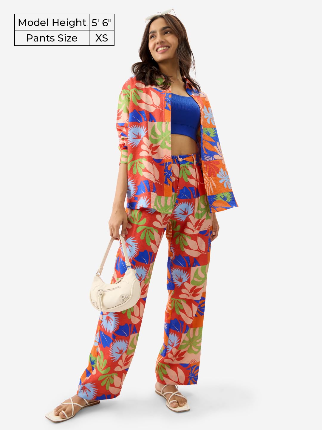 The Souled Store Leafy Charm Women and Girls Long Sleeve Collared Neck Button Down All Over Print Multicolor Oversize Fit Fashionable Trendy Boyfriend Shirts
