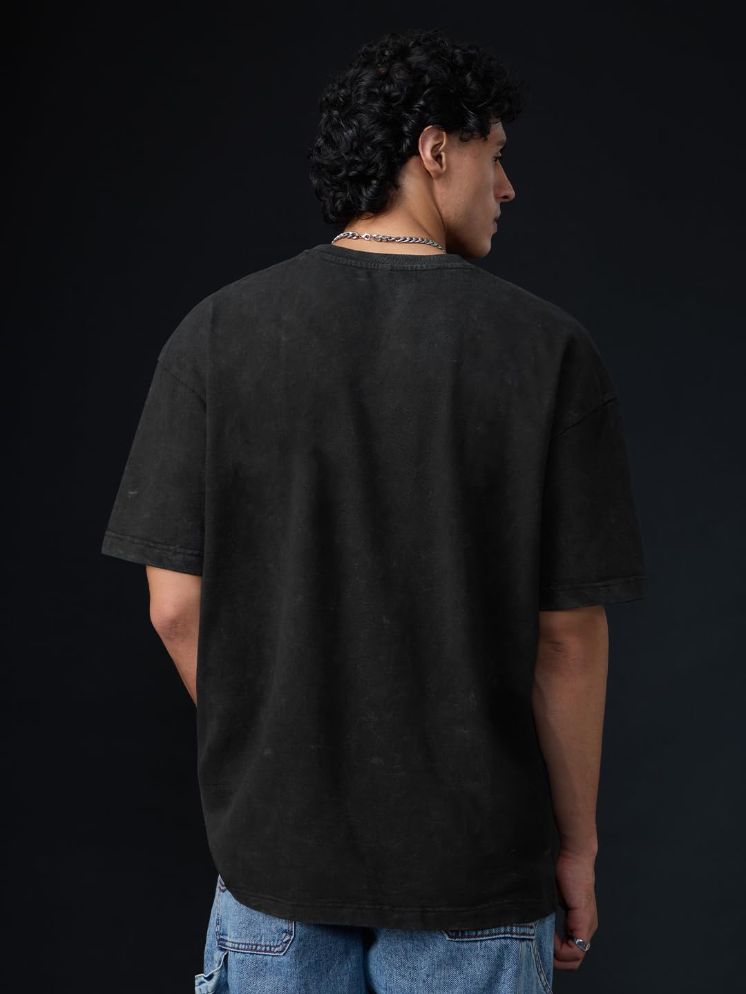 The Souled Store Marvel: Fantastic Four Men and Boys Short Sleeves Round Neck Black Graphic Printed Cotton Lightweight Breathable All-Season Oversized T-Shirt