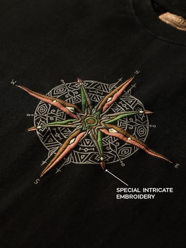 - INSPIRED BY ADVENTURE: The Nomad: Compass T-shirt channels the spirit of exploration with its rugged acid-washed texture and compass embroidery, symbolizing freedom and discovery.