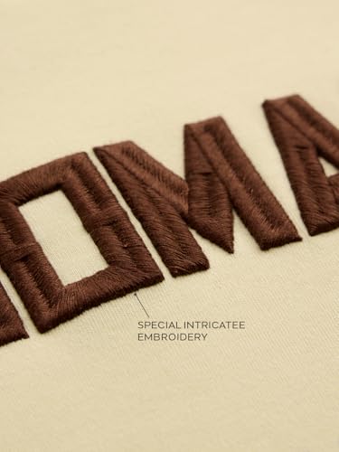 The Souled Store Nomad: Life Men and Boys Short Sleeves Round Neck Beige Embroidered Casual Drop Shoulder Streetwear Trendy Super Oversized T-Shirt