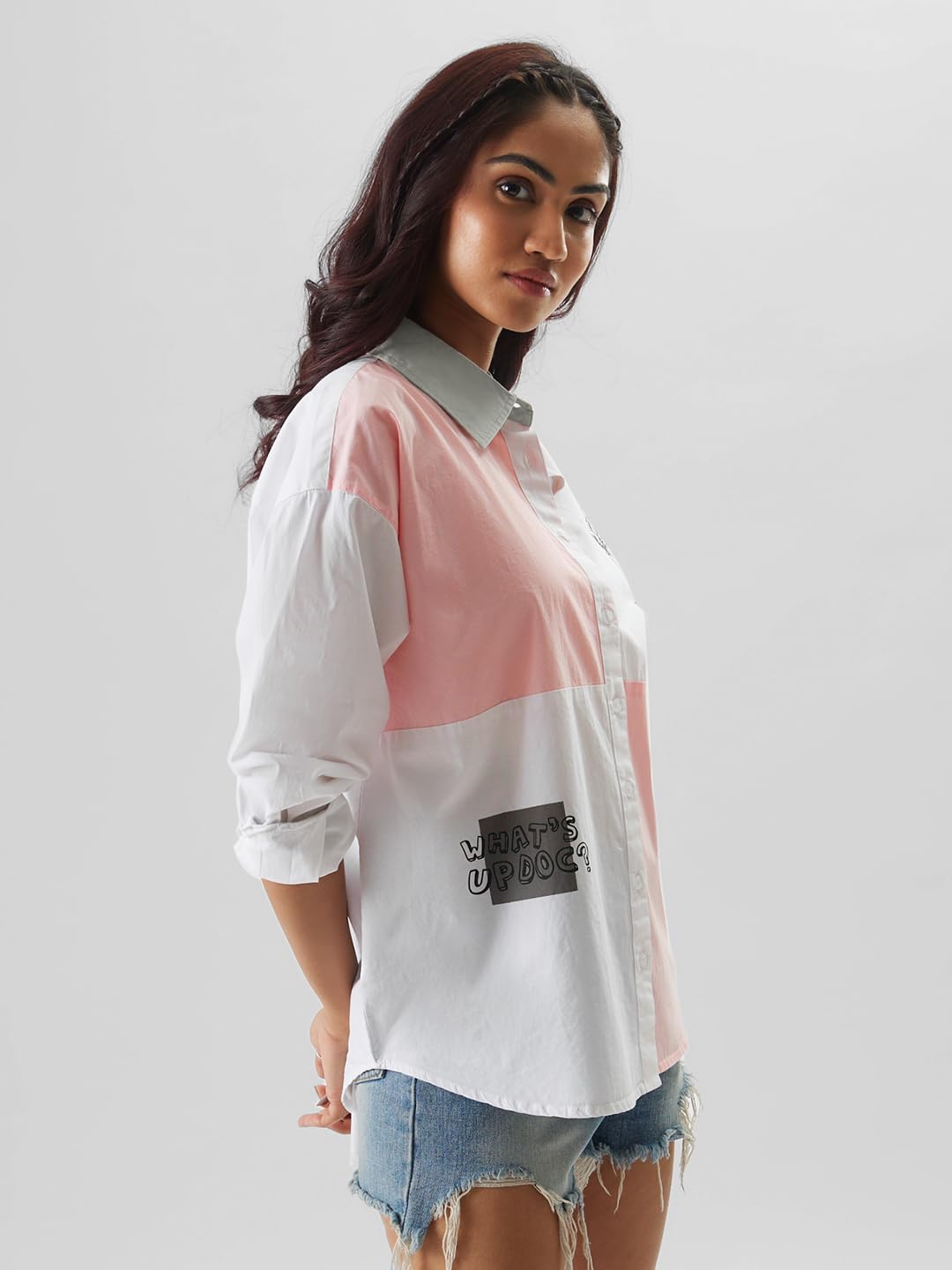 The Souled Store Official Looney Tunes: Bugs is Back Women and Girls Oversize Fit Full Sleeve Cotton Multicolor Boyfriend Shirt Women Boyfriend Shirts Fashionable Trendy Graphic Prints Pop Culture