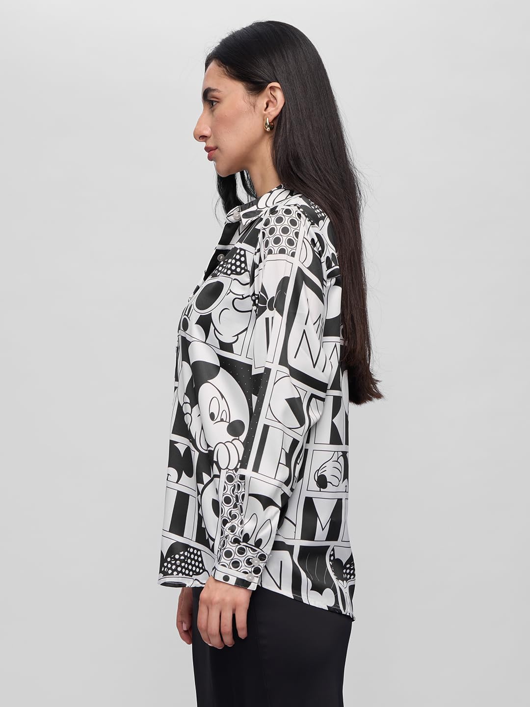 The Souled Store Official Mickey Mouse: Checkered Charm Women and Girls Long Sleeve Collared Neck All Over Print Button Front Regular Fit Shirts Multicolour
