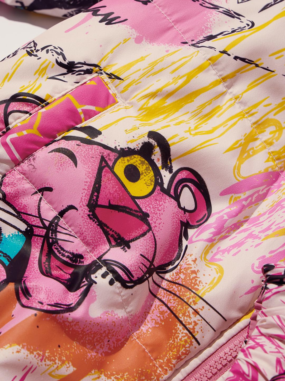 The Souled Store Reversible Puffer: Cool In Pink Women and Girls Full Sleeves Spread Collar Graphic Printed Polyester Regular Fit Lightweight Reversible Puffer Jacket
