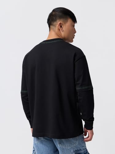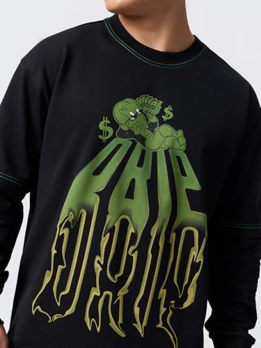 The Souled Store Richie Rich: Drip Men and Boys Long Sleeves Round Neck Black Graphic Printed Casual Lightweight Drop Shoulder Streetwear Trendy Oversized Full Sleeve T-Shirt