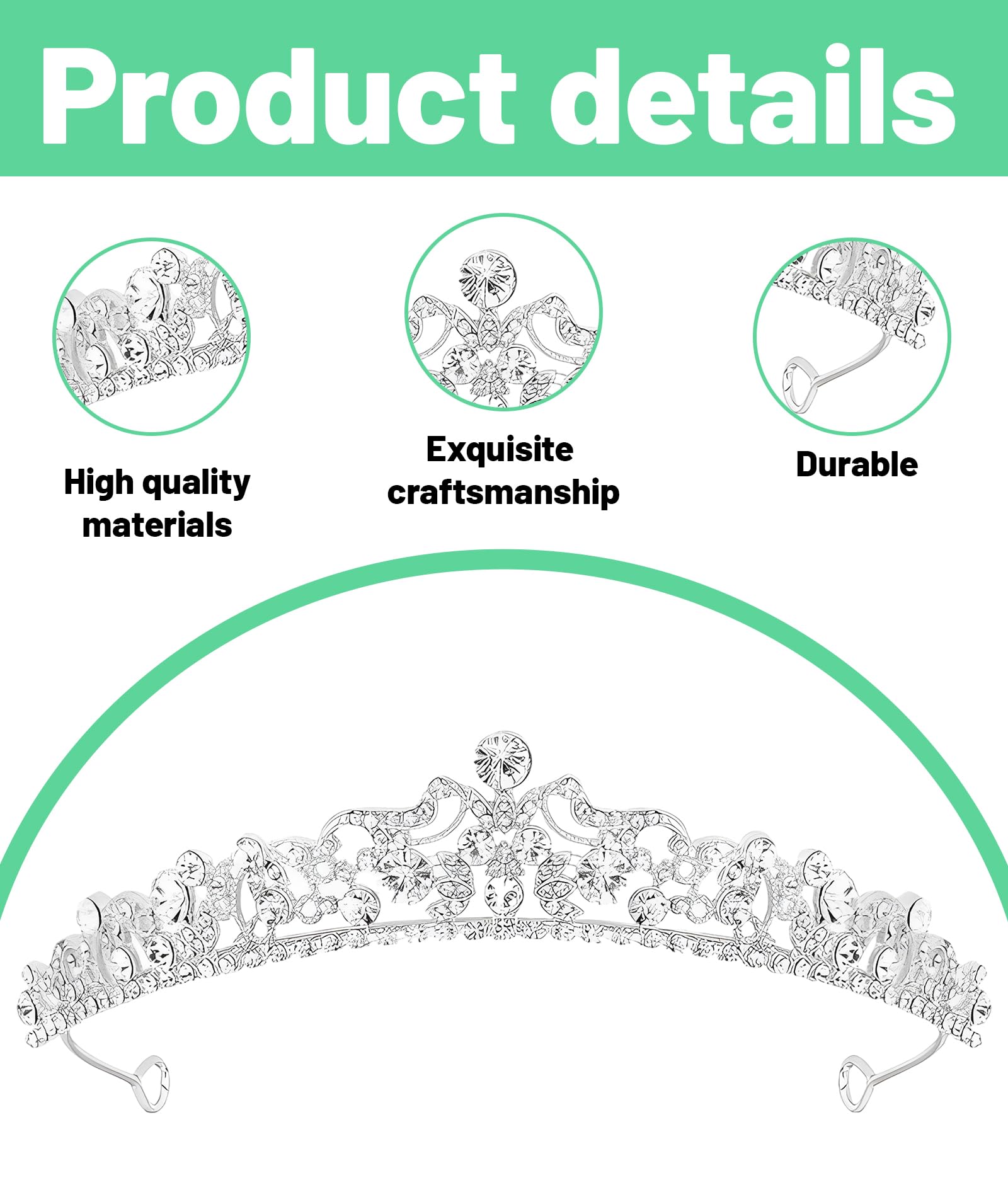 Elegant Tiara for Women Wedding: This exquisite crown features sparkling rhinestones arranged in a sophisticated design, perfect for brides seeking a touch of elegance; The tiara for women lightweight yet durable construction ensures comfort throughout the event, making it ideal for weddings, proms, and special occasions