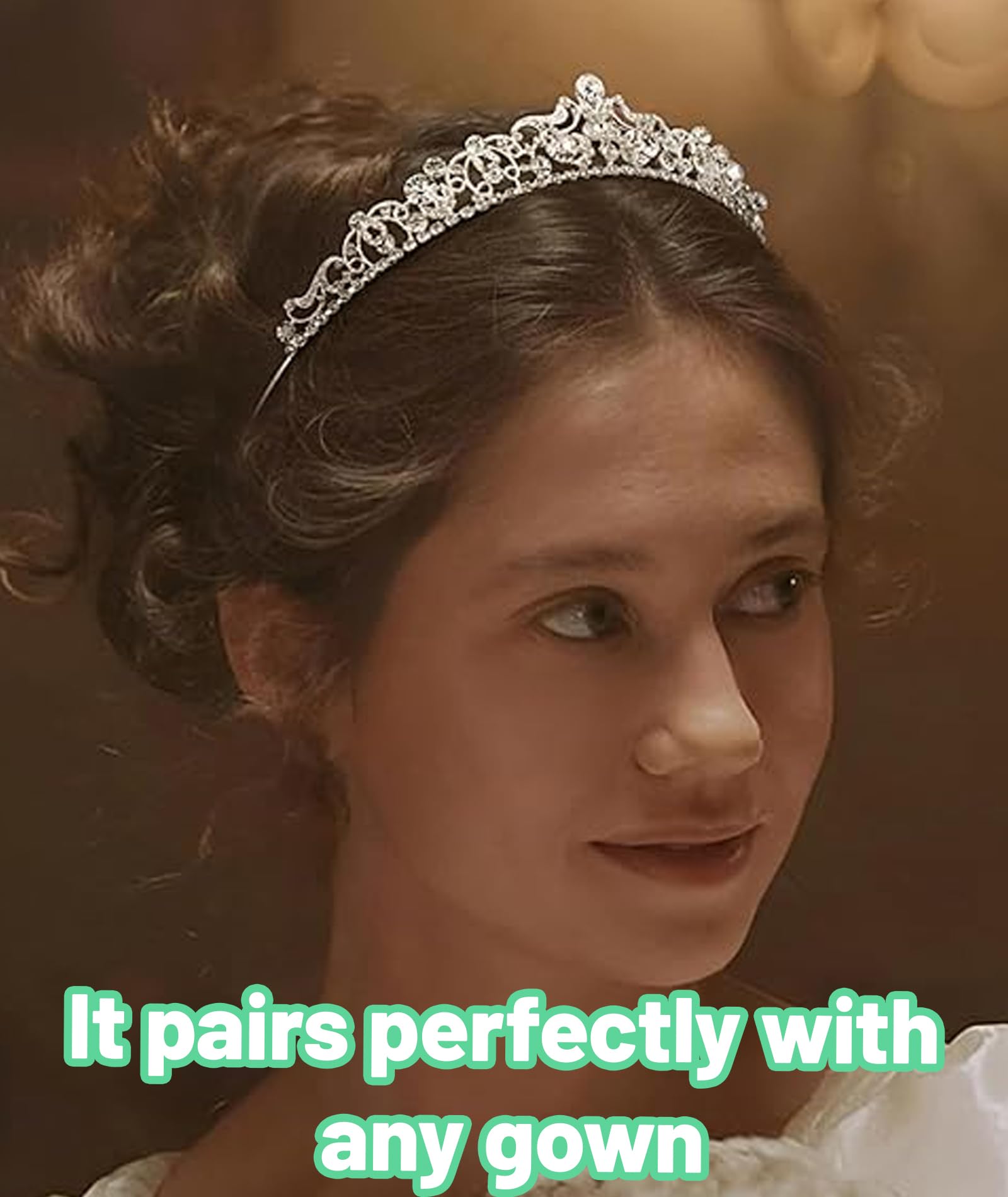 - Secure and Comfortable Fit:This tiara for women wedding Designed with small holes at both ends for easy attachment using ribbons or hairpins; The adjustable fit ensures the tiara stays in place without slipping, allowing for worry-free wear all night long