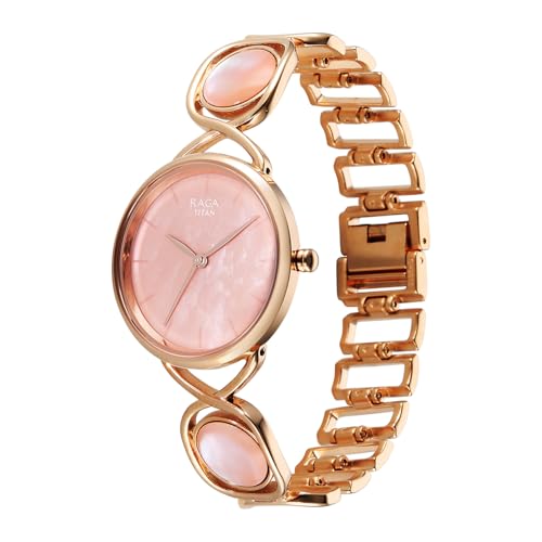 Titan Raga Power Pearls 2.0 with Quartz Analog Mother of Pearl Dial Rose Gold Brass Strap Watch for Women - 2810WM02F