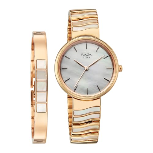 Titan Raga Power Pearls 2.0 with Quartz Analog Mother of Pearl Dial Rose Gold Brass Strap Watch for Women - 2810WM03F