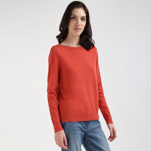 Tommy Hilfiger Red Organic Cotton Solid Women Regular Fit Sweater