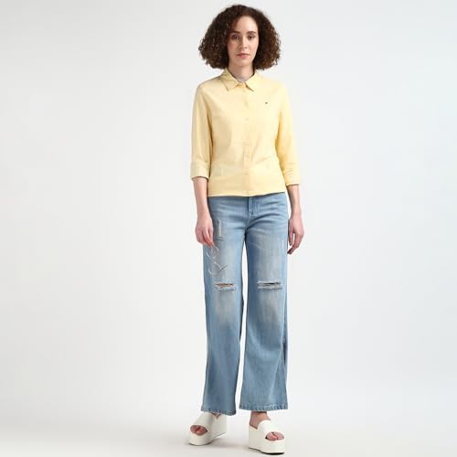 Tommy Hilfiger Yellow Solid Spread Collar Full Sleeve Shirt