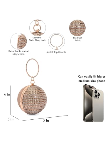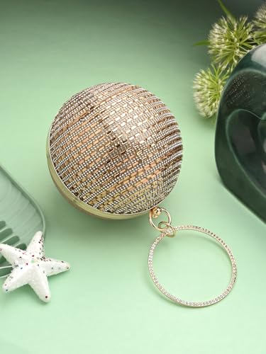 TOOBA Handicraft Women's Embellished Beads & Stones Ball Shaped Clutch Bag| Evening Bag, Bridal Purse & Party Handbag | Wedding & Special Occasion Clutch
