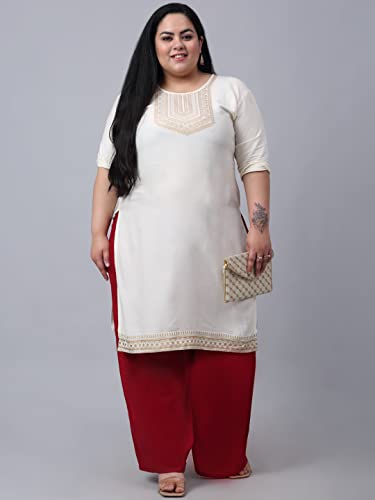 TREND LEVEL Plus Size Women's Rayon Loose Fit Flared Wide Leg Palazzo Pants Soft Plain/Solid Design with Drawstring Elastic (Pack of 1) (9XL, Maroon)