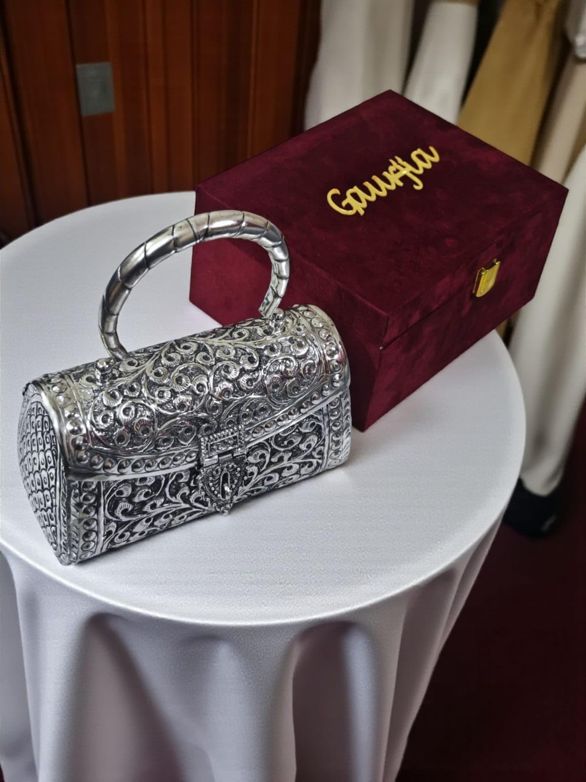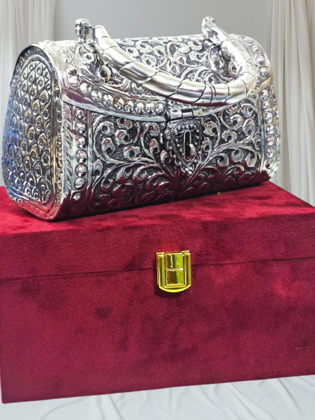• Handmade hand clutch with Beautiful Metal Handle,Bag is complete made from Brass Metal