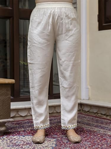 TRENDMALLS Women's Chanderi Silk Embroidery Salwar Suit Set Kurta Pant with Dupatta (G274-OffWhite-S-)