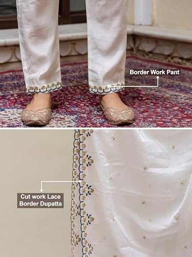 - Style: A line Alia Cut Kurta Pant Set || Work: Embroidery cut work border