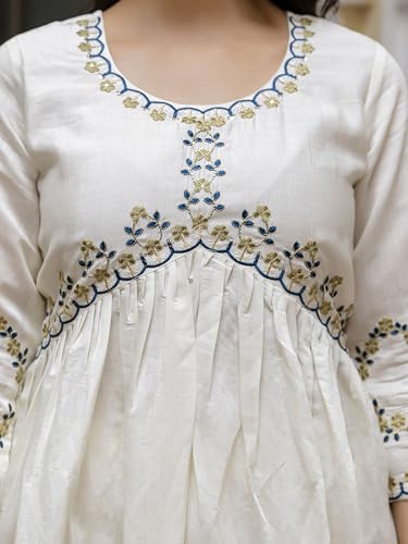 - Color: OffWhite || Sleeves Type: 3/4 || Neckline: Round Neck