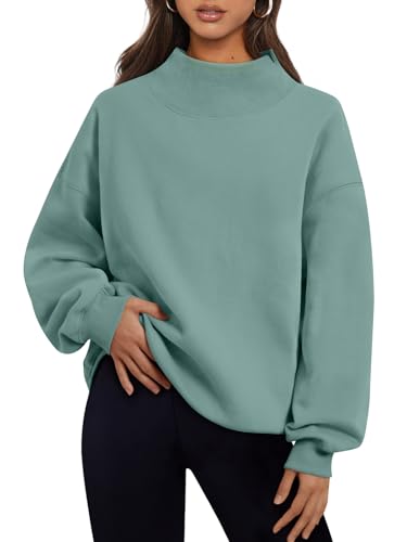 Trendy Queen Womens Oversized Sweatshirts Turtleneck Pullover Long Sleeve Hoodies Tops Fall Fashion Outfits 2025 Clothes, Green, Large