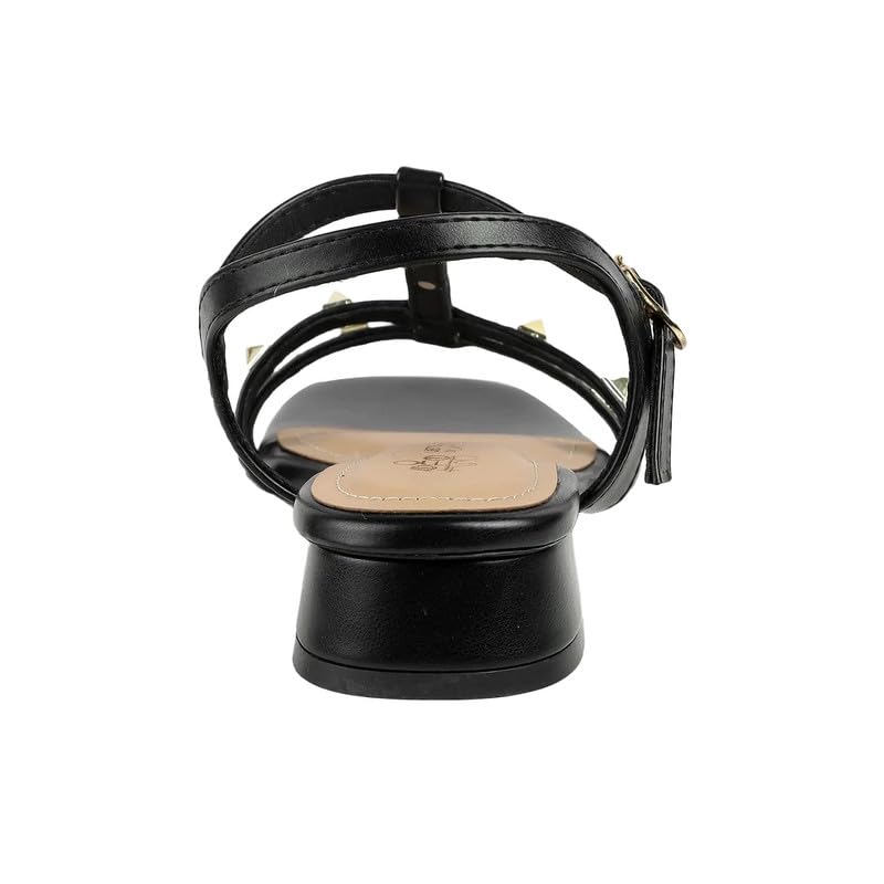 • Edgy Detailing: Gold-toned pyramid studs on the T-strap and forefoot straps add a bold, sophisticated, rock-stud flair.