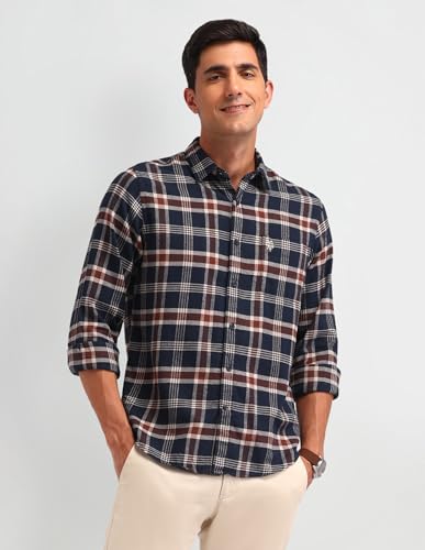 U.S. Polo Assn. Denim Co. Men's Checkered Slim Fit Shirt (UDSHT1408_Blue