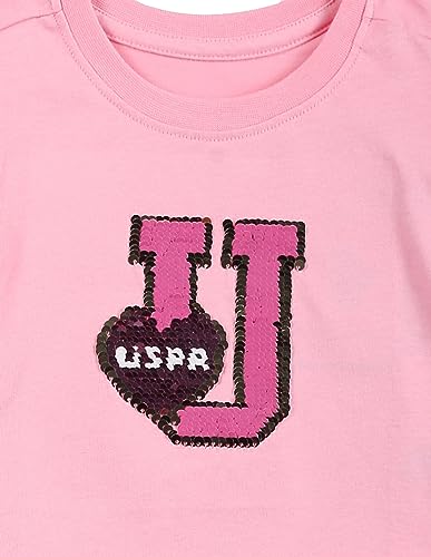 U.S. Polo Assn. Kids Regular fit Cotton Embellished Short Sleeves Crew Neck T-Shirts (UGTSH0285_Pink_12M)