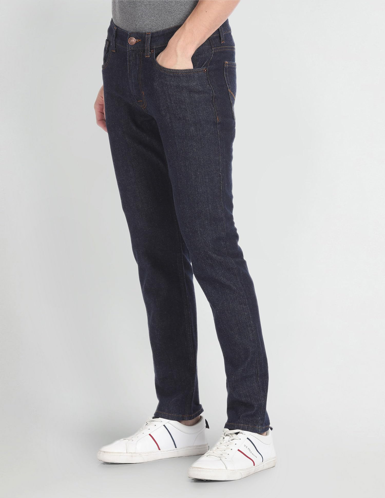 With premium fabric and a slim tapered fit, these jeans are a perfect choice for your comfortable outings.