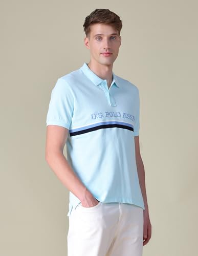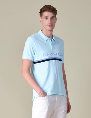 U.S.Polo Association Men's Brand Embroidered Regular Fit Polo Shirt (USTSHOE1025_Light Blue_2XL)