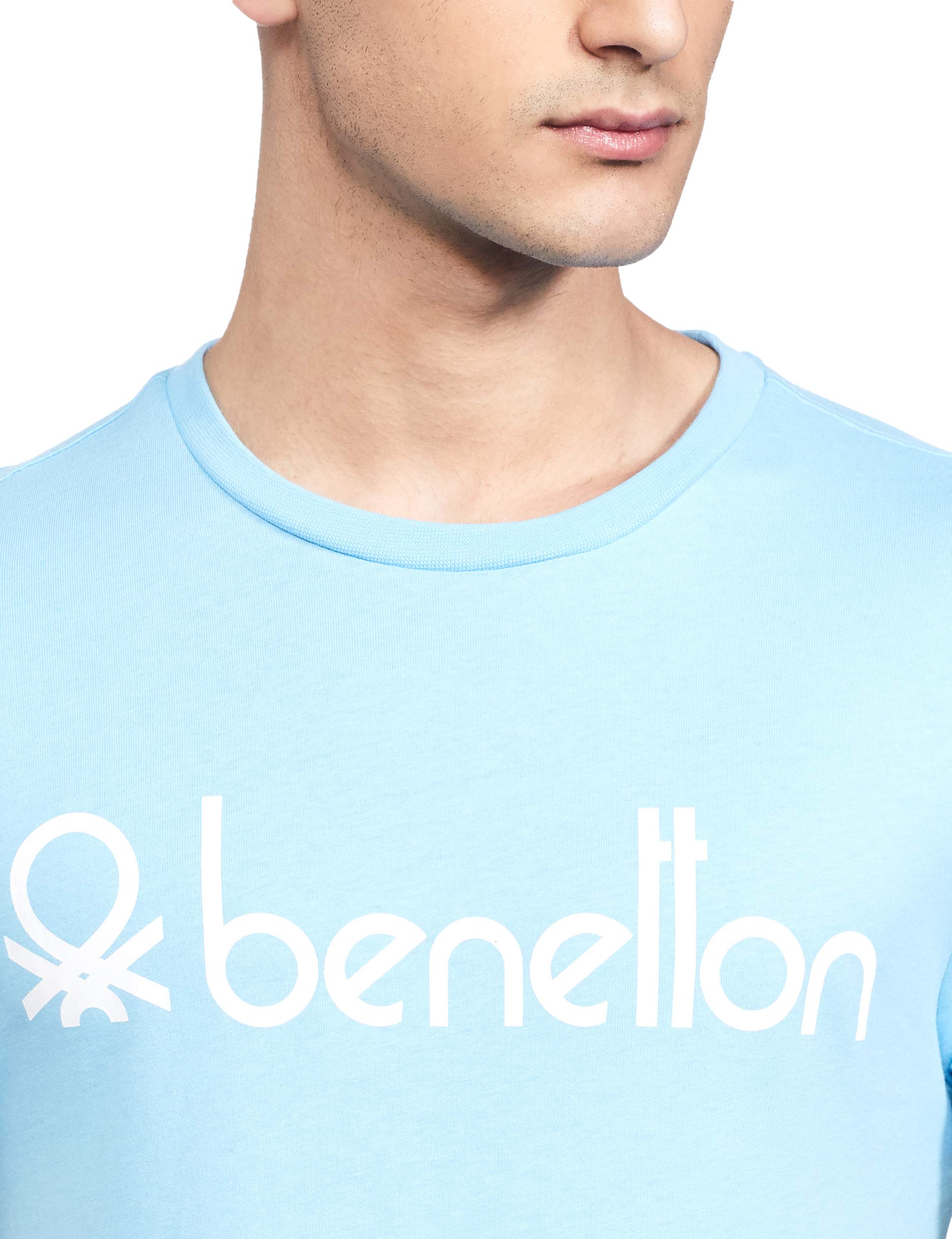 United Colors of Benetton Men's Slim T-Shirt (3099J7106I903_Sky Blue L)