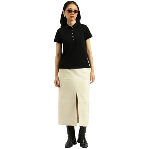 United Colors of Benetton Polo Neck Solid T-Shirt (Size: M)-25A3WG9E3173G100 Black