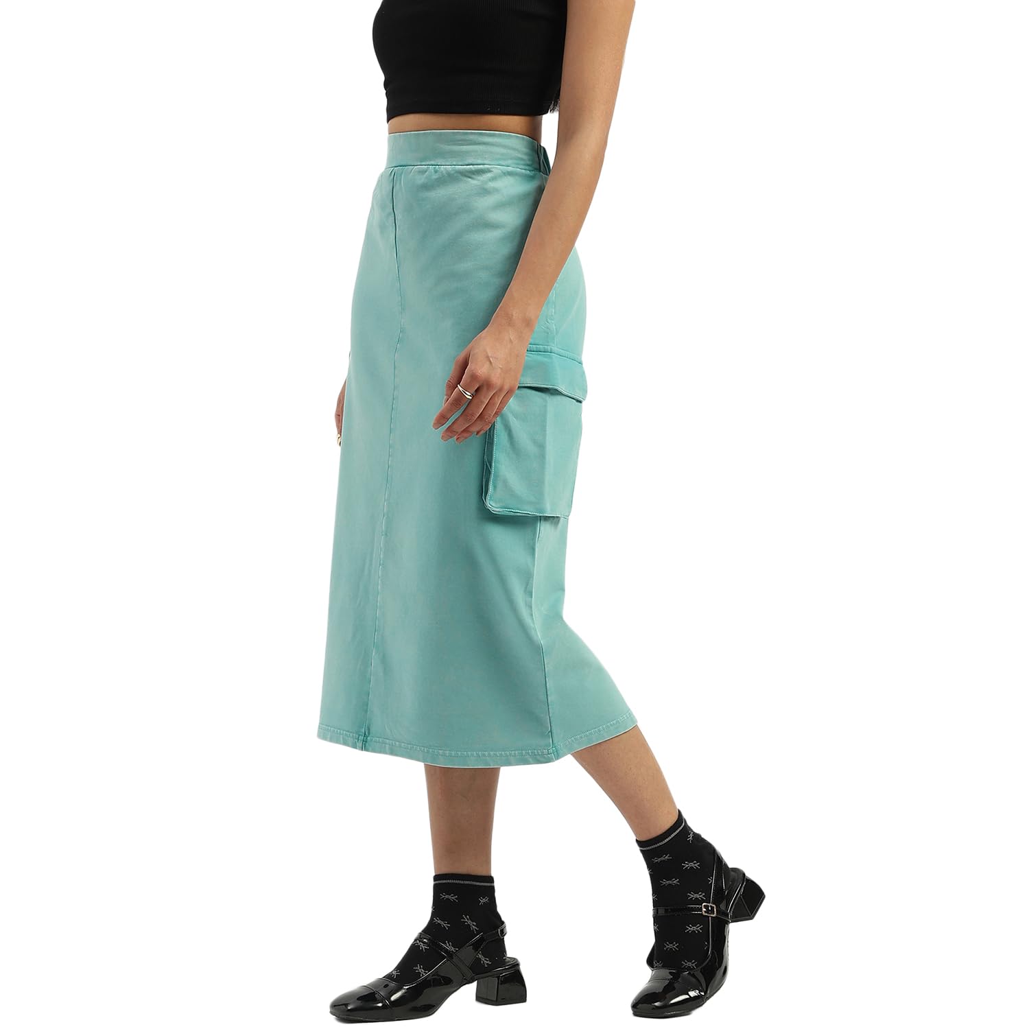 UNITED COLORS OF BENETTON Solid Midi Cargo Skirt (Size: XS)-25P3E29D3386I08N Blue