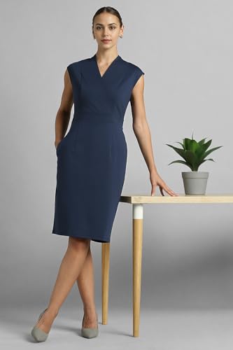 Van Heusen Women's Cotton Blend Modern Above The Knee Dress (VWDRCRGFF18119_Navy