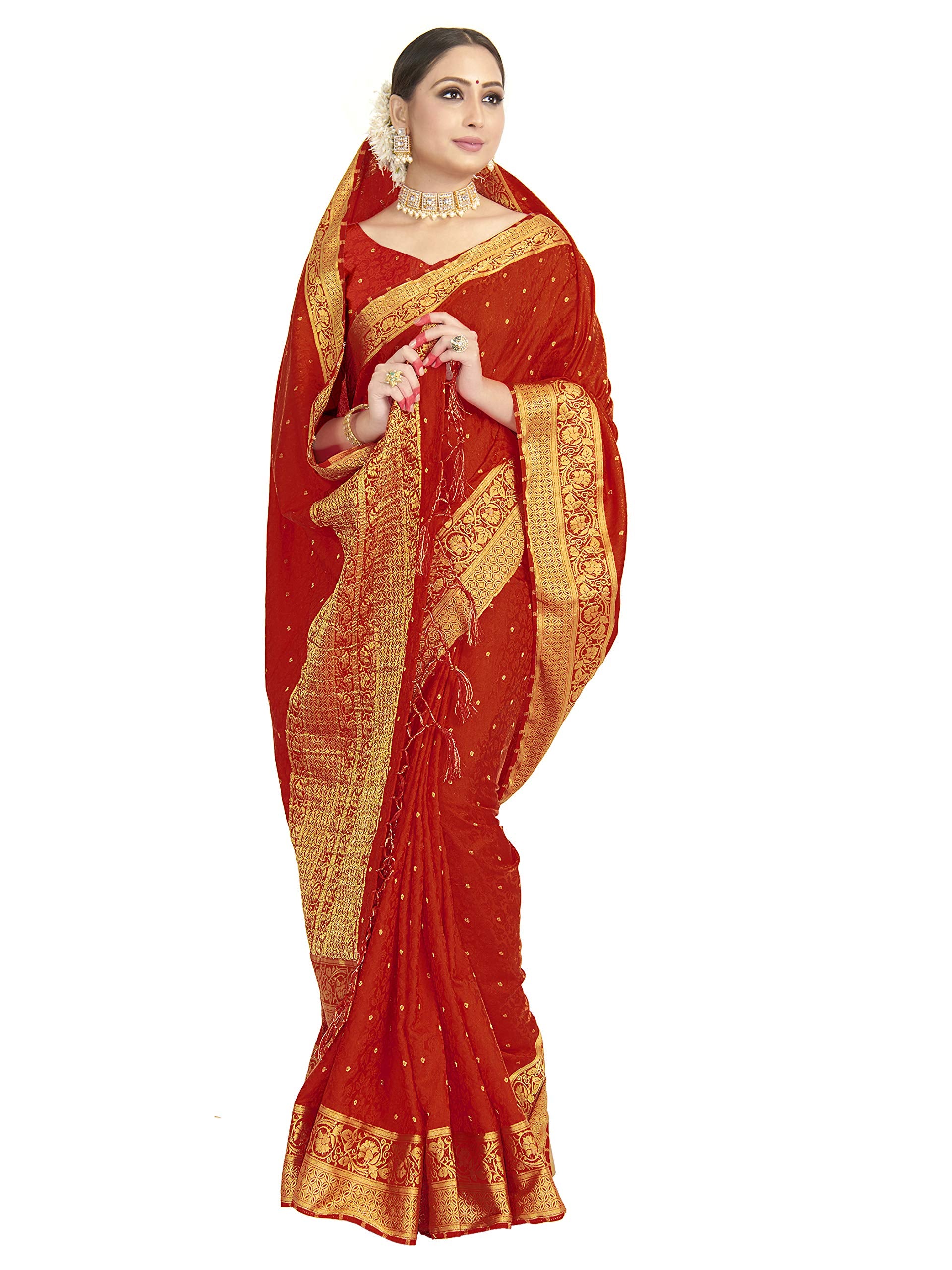Vardha Women's Banarasi Satin Silk Saree with Unstitched Blouse Piece - Zari Woven Work Sarees for Wedding (172, Red)