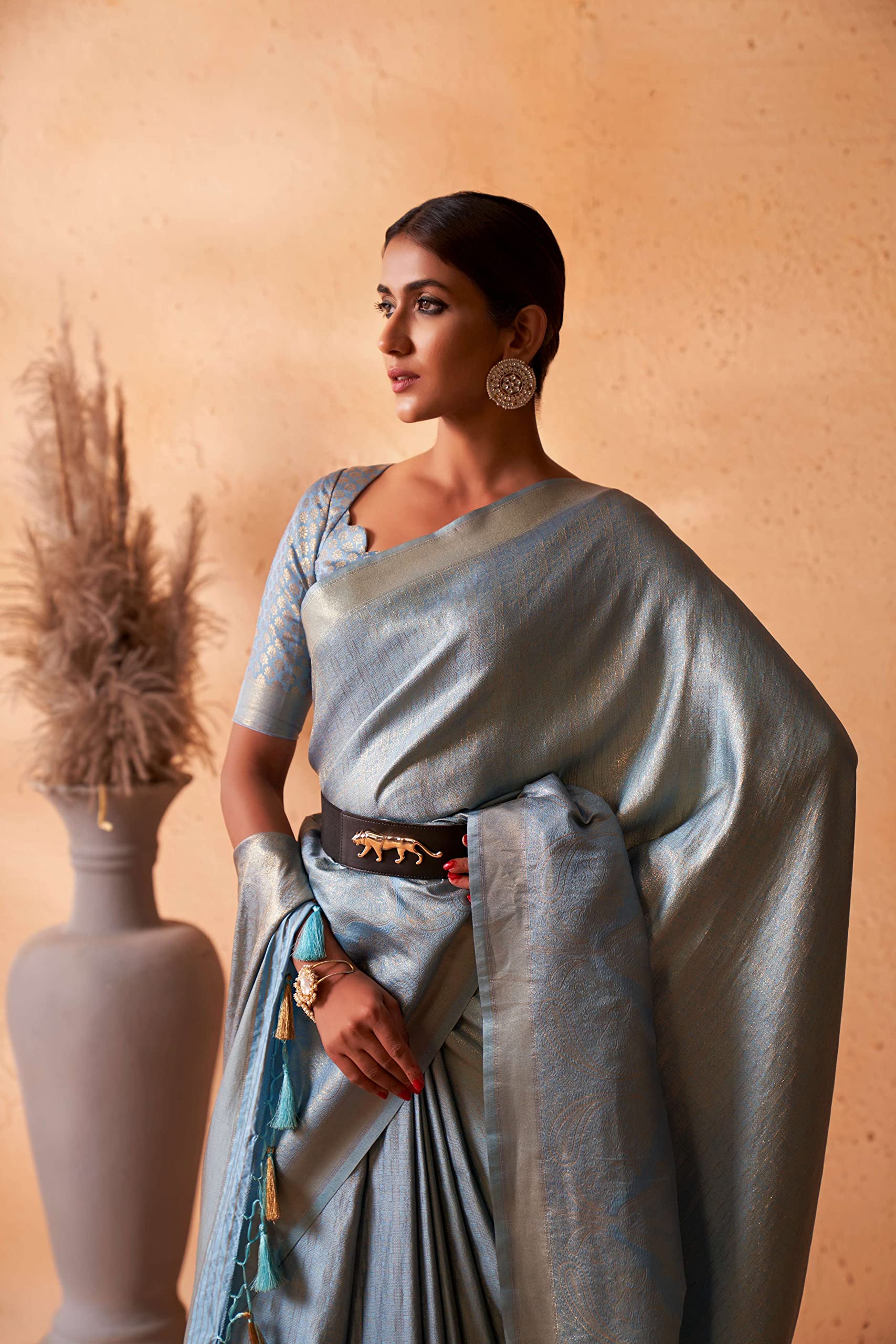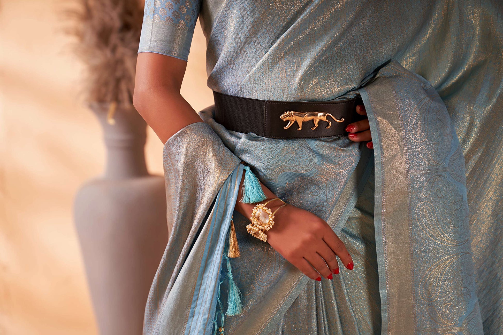 - PREMIUM QUALITY: This Woven Gold Zari Design Saree is made from premium quality Art silk material. It comes with an unstitched Brocade Blouse with Gold Zari Border