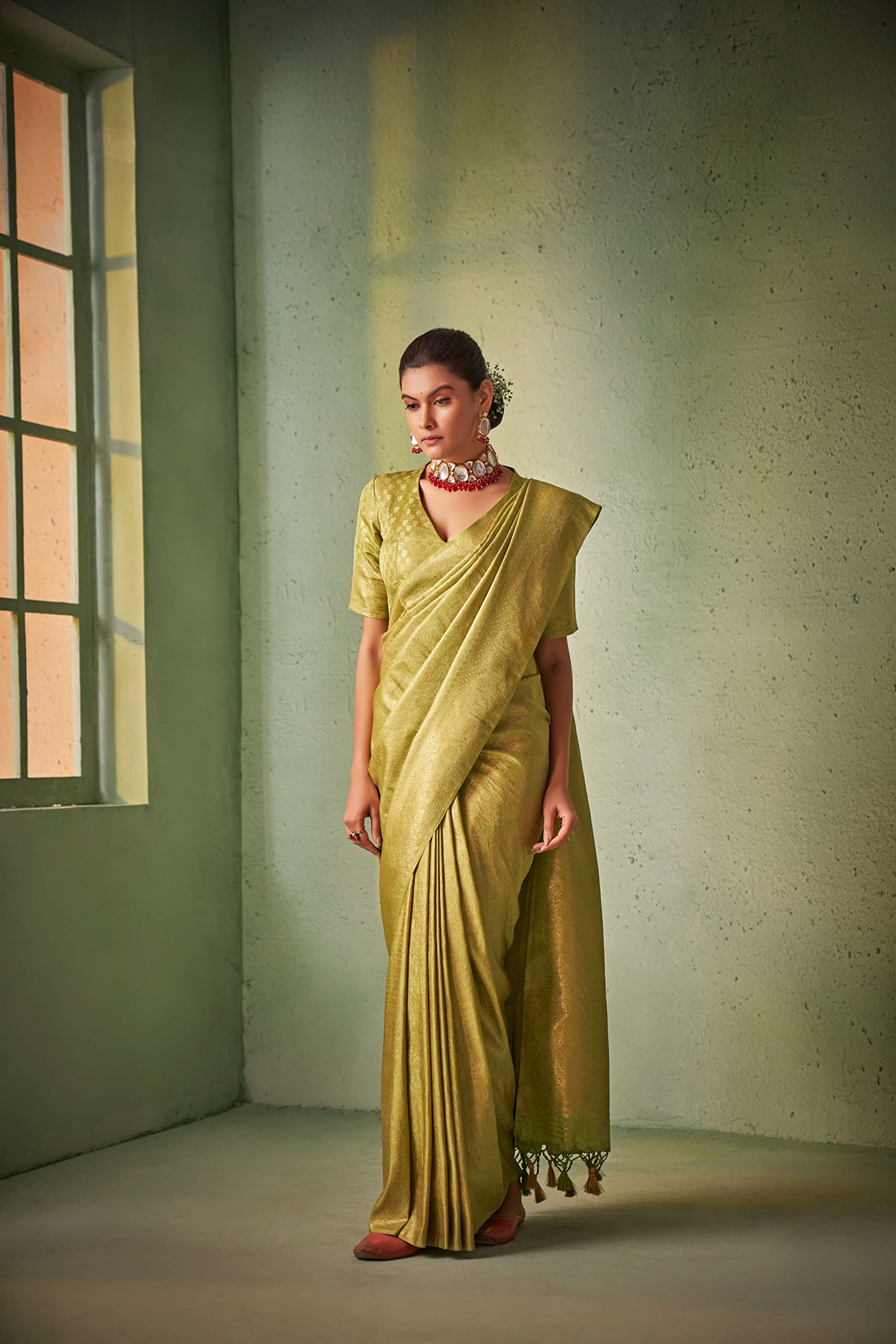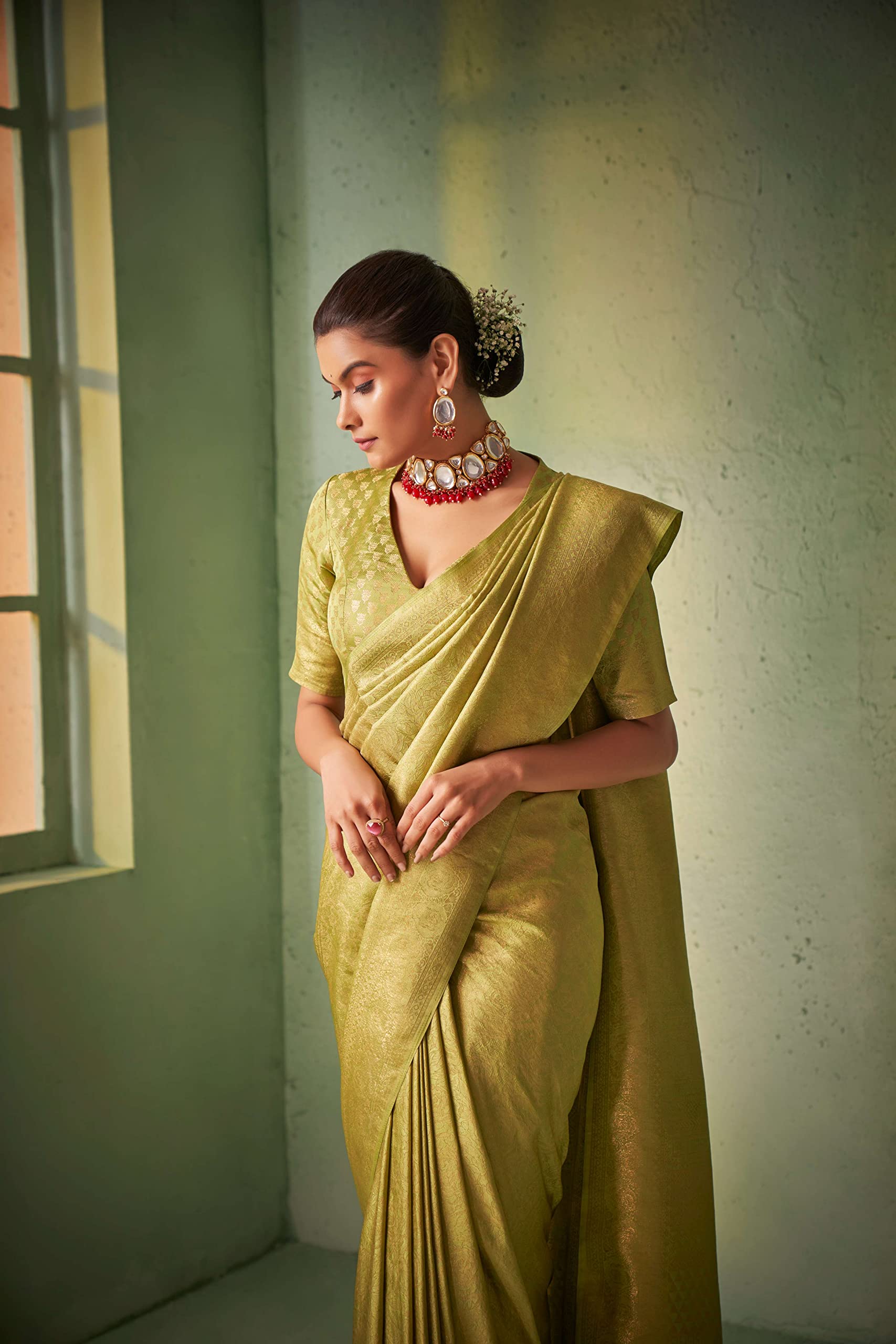 - PREMIUM QUALITY: This Woven Gold Zari Design Saree is made from premium quality Art silk material. It comes with an unstitched Brocade Blouse with Gold Zari Border