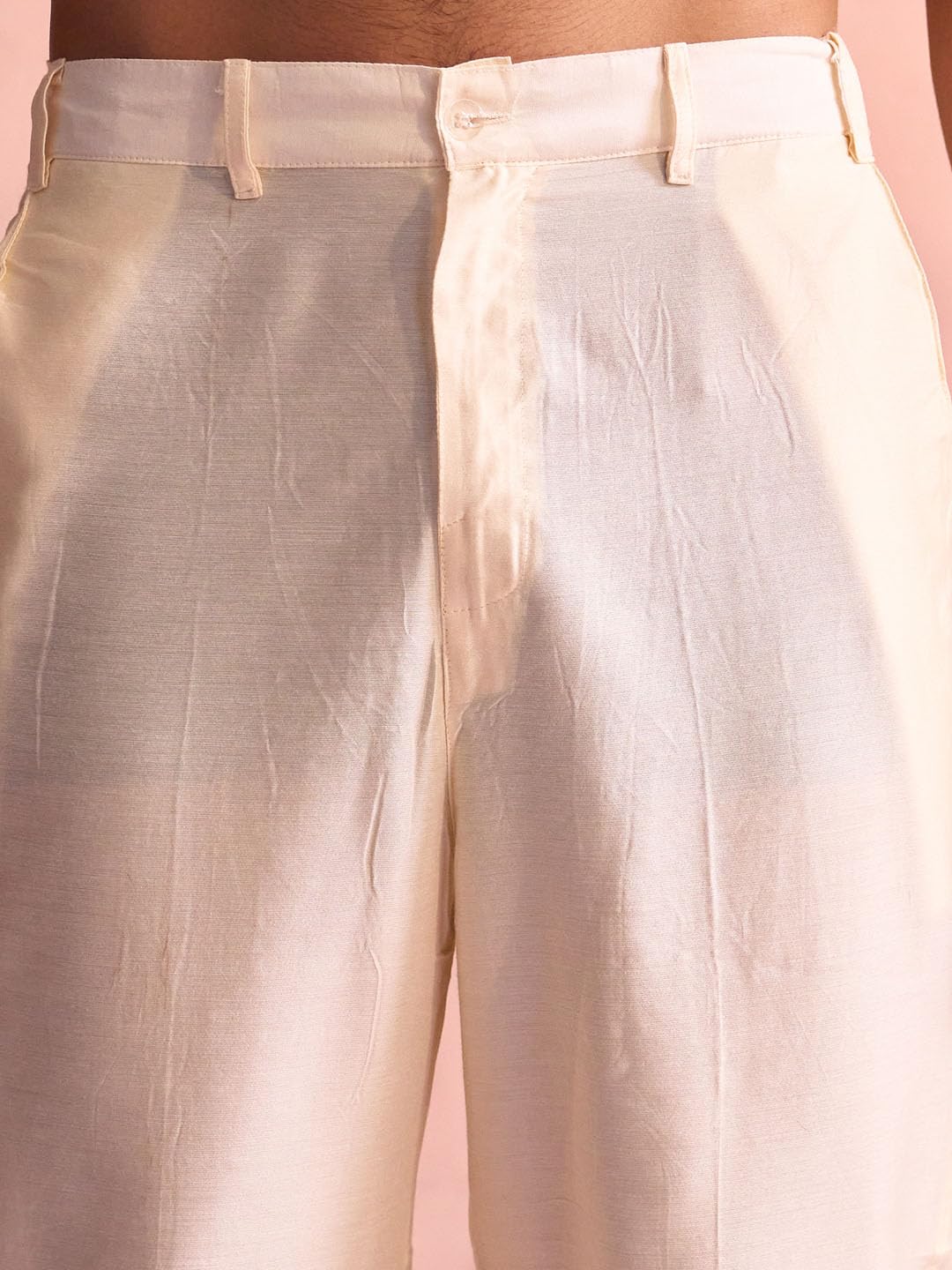 VASTRAMAY Men's Cream Silk Blend Sherwani Set_VASMIW221CRnMIW222CRnPANT002CR_42