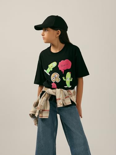 VERO MODA Girl's Graphic Print Regular Fit Black T-Shirt