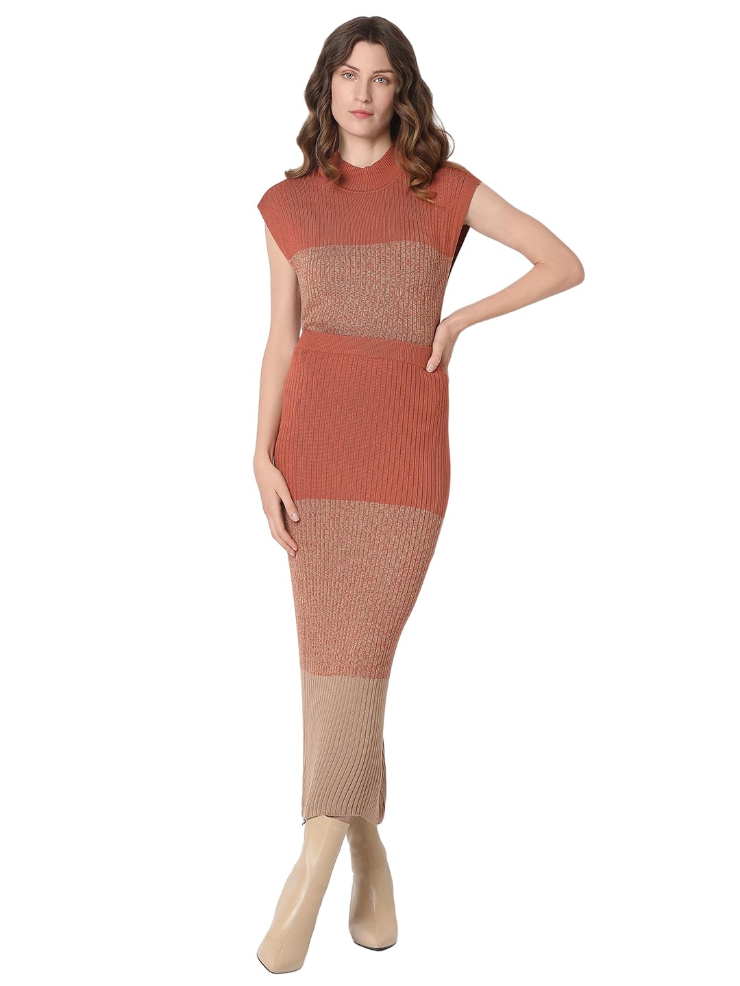 Elevate your style with this elegant three-tone pencil skirt. Crafted from fitted knitted fabric, it offers a sleek, flattering silhouette and a comfortable, mid-rise waistband. The midi length adds a timeless touch, making it perfect for both office wear and evenings out.