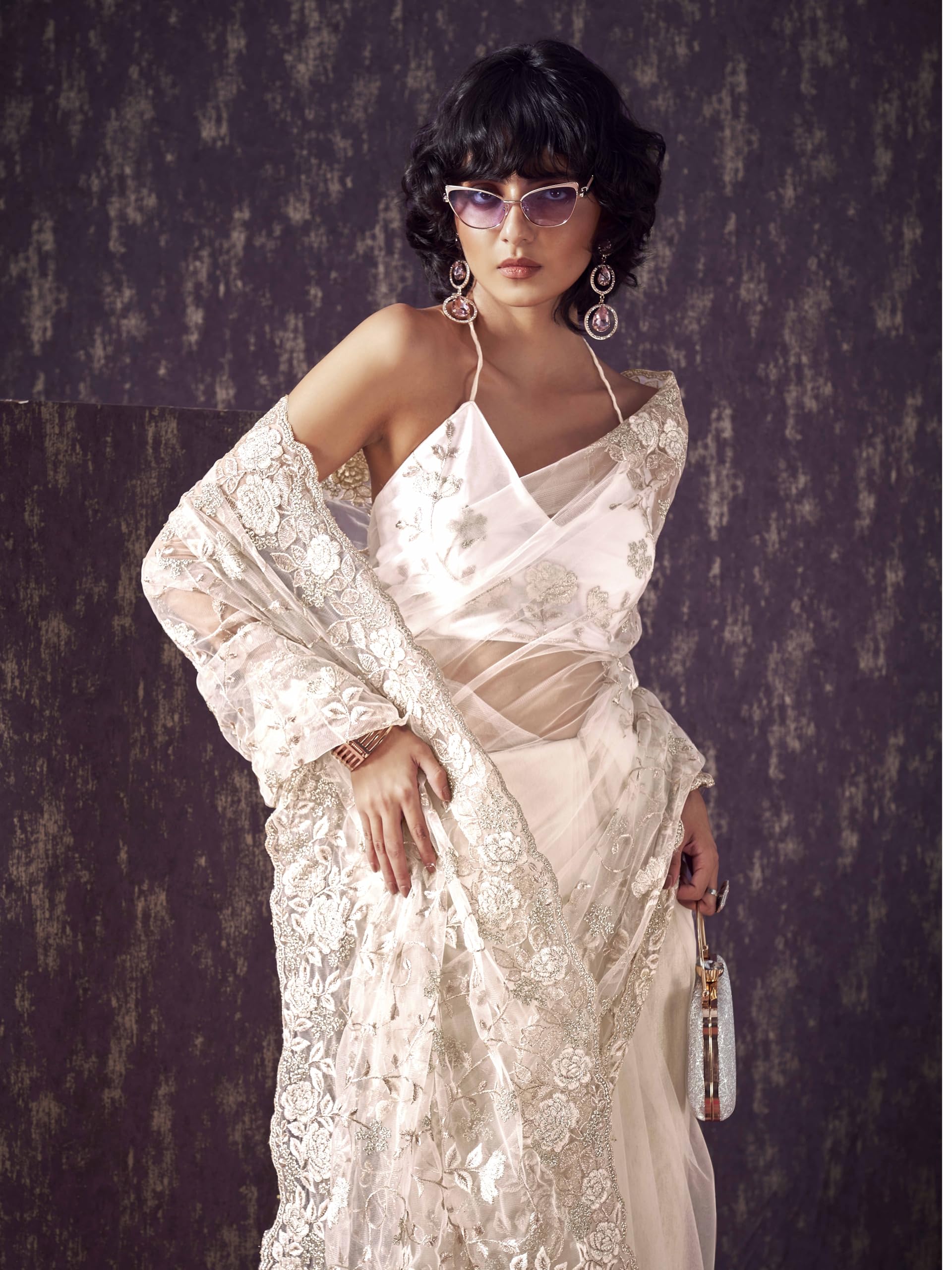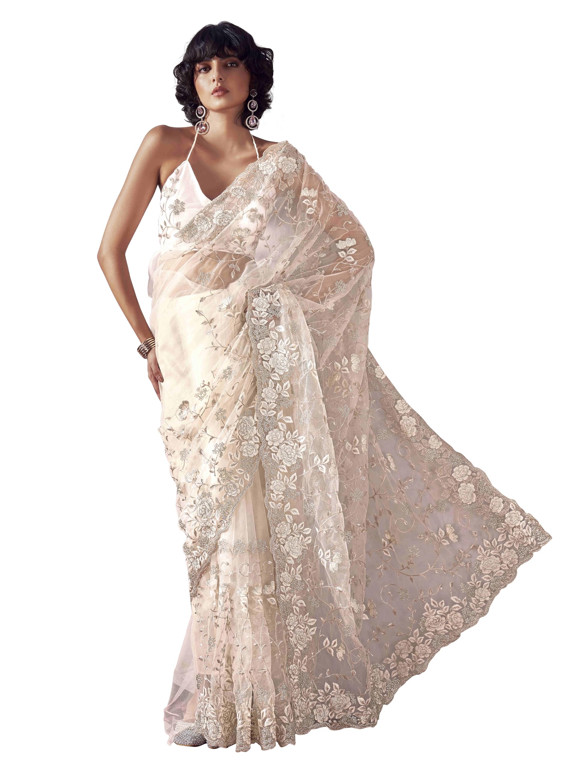 Womanista Women's Net Embroidered Saree (TI6580_Cream)