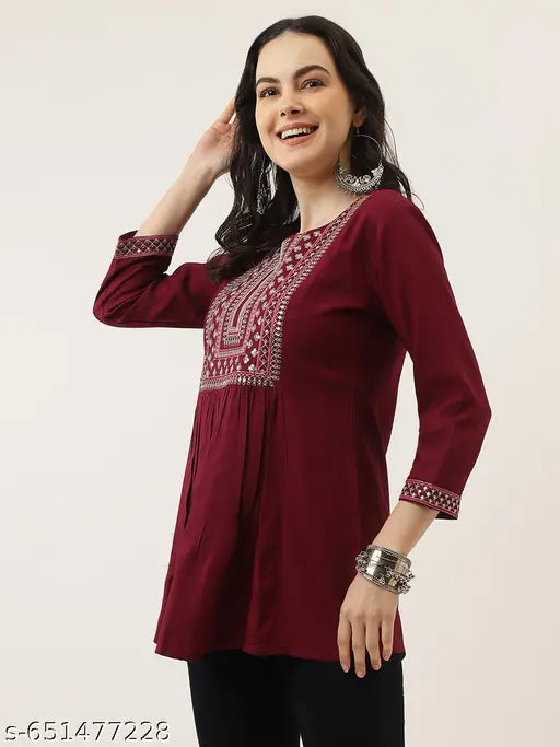 NameWomens Rayon Embroidery Trendy Top, Partywear top, Festival top, Long top, Daily wear top
