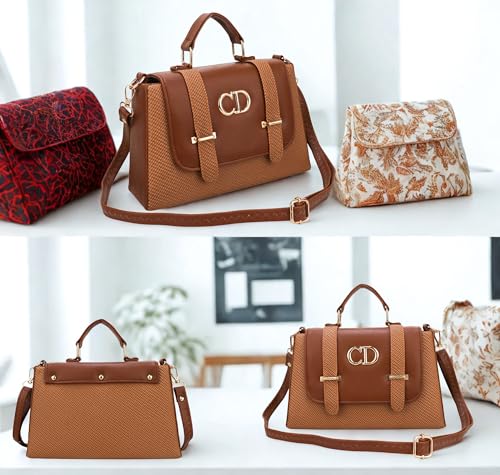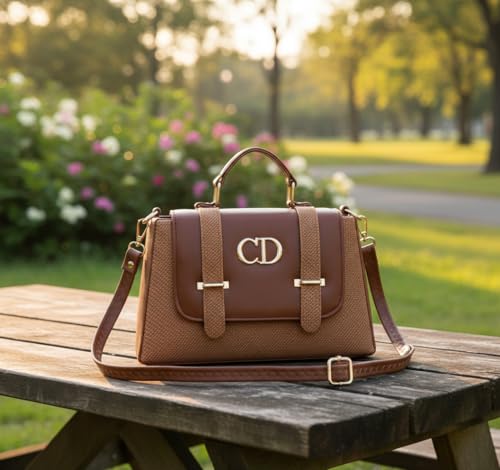 YOYOWING Women’s Premium Textured Satchel Sling Bag, Stylish Top Handle Crossbody Handbag with Adjustable Strap, Designer Shoulder Purse for Office & Party (Brown)